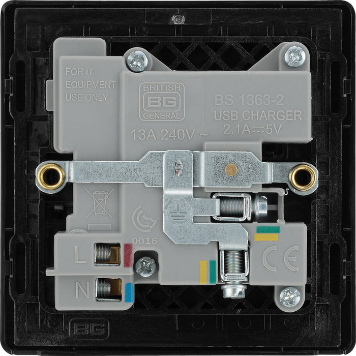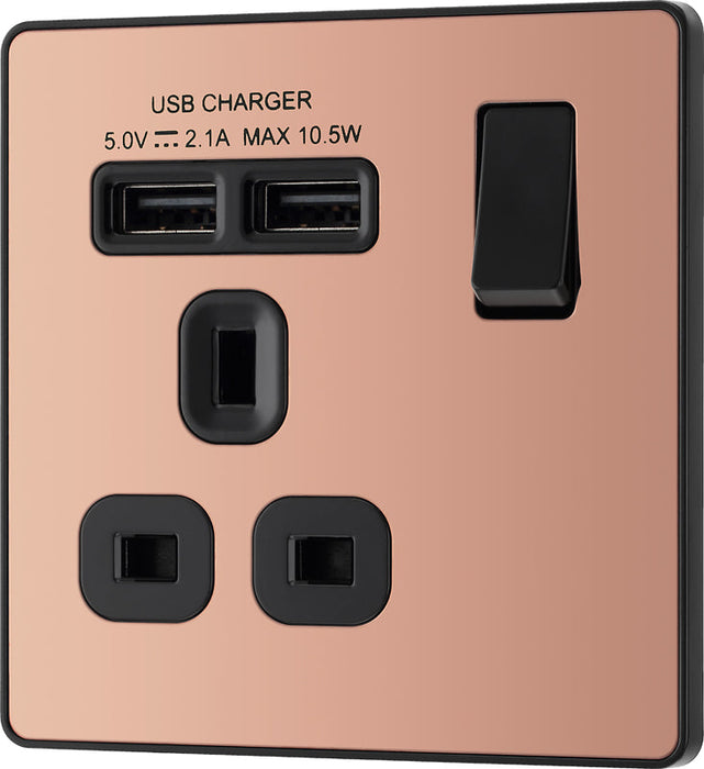 BG Evolve PCDCP21U2B 13A Single Switched Power Socket + 2xUSB(2.1A) - Polished Copper (Black)