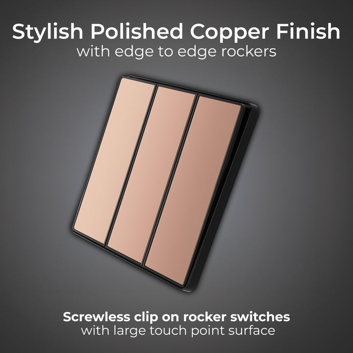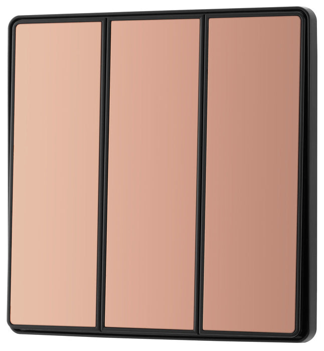 BG Evolve PCDCP43EB 20A 16AX 2 Way Triple Light Switch, Edge to Edge Rocker - Polished Copper (Black)