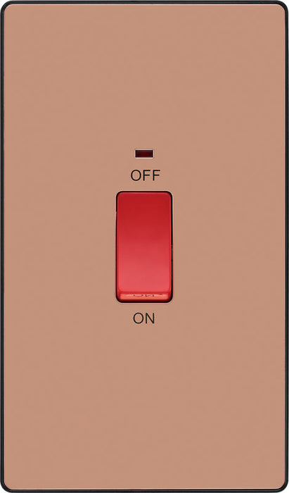 BG Evolve PCDCP72B 45A Double Pole Rectangular Switch with LED Power Indicator - Polished Copper (Black)