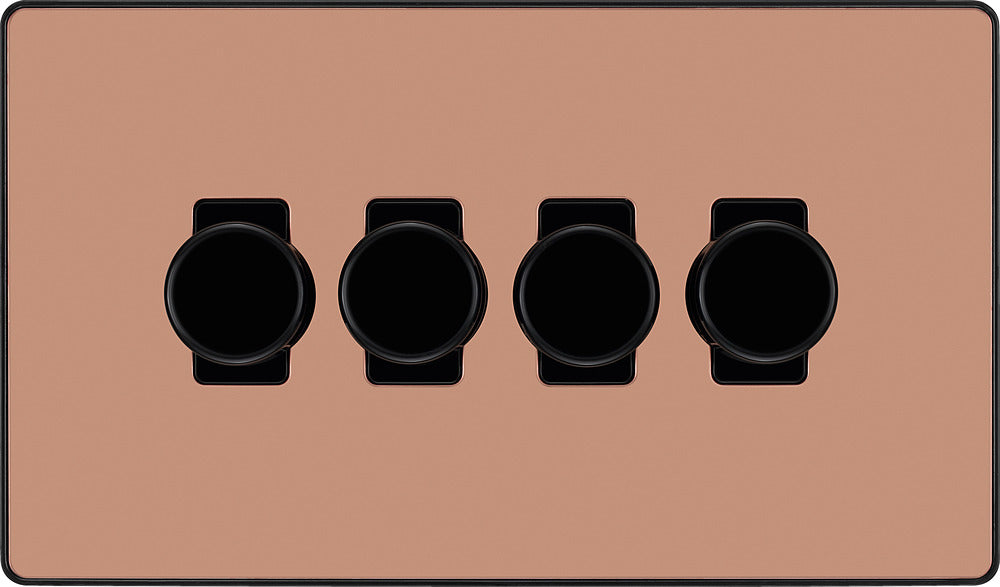 BG Evolve PCDCP84B 2-Way Trailing Edge LED 200W Quadruple Dimmer Switch Push On/Off - Polished Copper (Black)