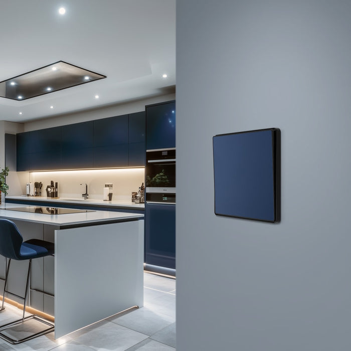 BG Evolve PCDDB13EB 20A 16AX 2 Way Single Intermediate Light Switch, Edge to Edge Rocker - Matt Blue (Black)