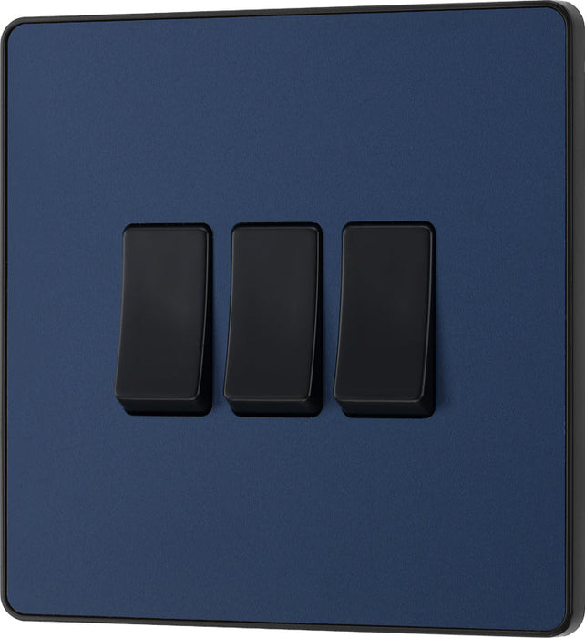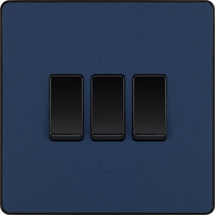 BG Evolve PCDDB43B 20A 16AX 2 Way Triple Light Switch - Matt Blue (Black)