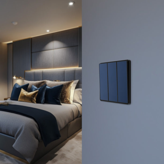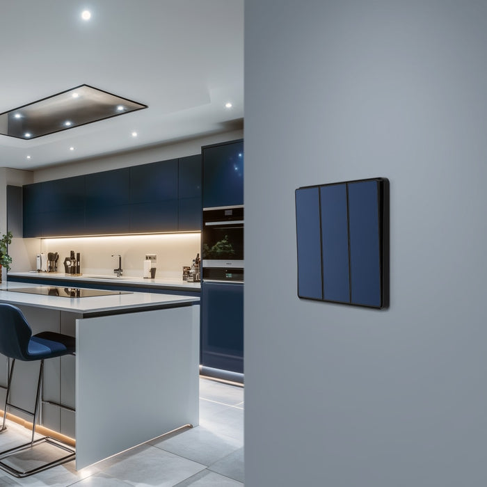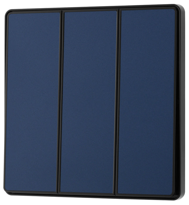BG Evolve PCDDB43EB 20A 16AX 2 Way Triple Light Switch, Edge to Edge Rocker - Matt Blue (Black)