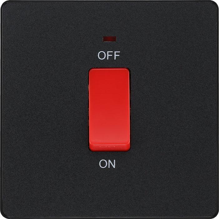 BG Evolve PCDMB74B 45A Double Pole Square Switch with LED Power Indicator - Matt Black (Black)