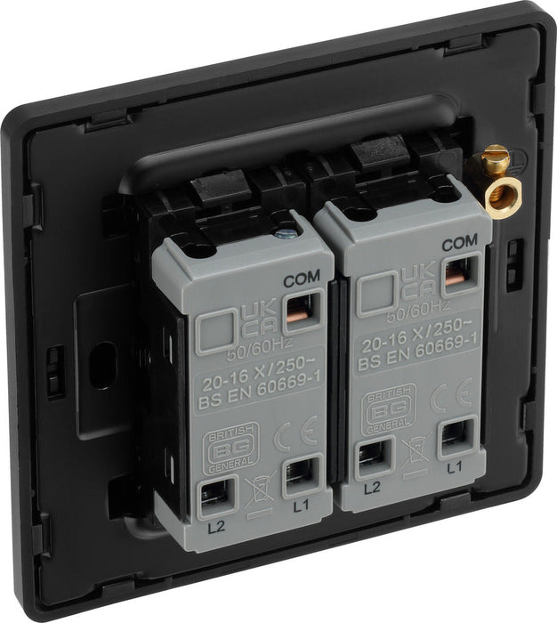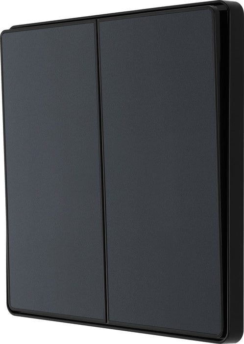 BG Evolve PCDMG42EB 20A 16AX 2 Way Double Light Switch, Edge to Edge Rocker - Matt Grey (Black)