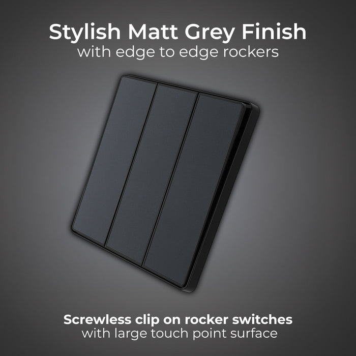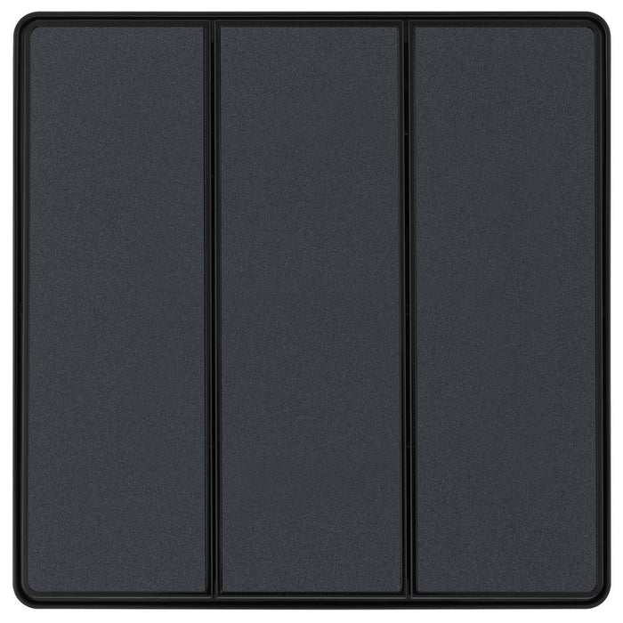 BG Evolve PCDMG43EB 20A 16AX 2 Way Triple Light Switch, Edge to Edge Rocker - Matt Grey (Black)