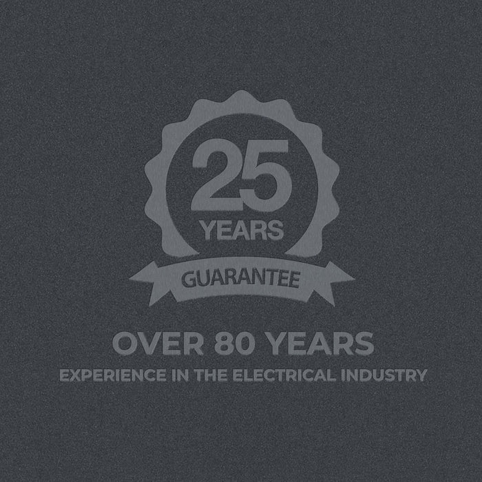 This Evolve 20A triple light switch from BG will operate three lights in a room. The 2 way switch lets a second switch be added to the circuit, allowing the customer to operate the same lights from another location, e.g. either side of a room, or top and bottom of the stairs. The low profile edge-to-edge rockers clip in to place once the base is installed for a screwless appearance, with a large touch surface for easy operation and brushed steel finish. Installation is fast and secure with clearly labelled captive backed out terminal screws. The switch is certified to BS60669-1 standards, and comes with a 25-year guarantee for total peace of mind. BG’s Evolve range of wiring accessories is available in a variety of colours and finishes to give you greater choice and flexibility when choosing electrical accessories.