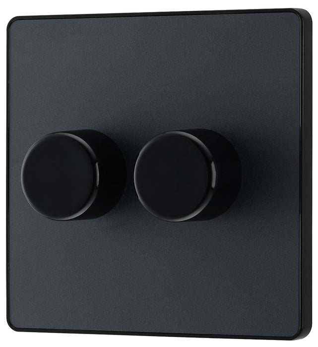 BG Evolve PCDMG82B 2-Way Trailing Edge LED 200W Double Dimmer Switch Push On/Off - Matt Grey (Black)