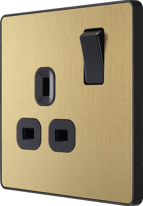 BG Evolve PCDSB21B 13A Single Switched Power Socket - Satin Brass (Black)
