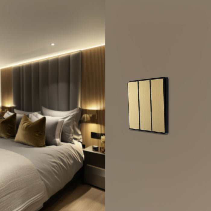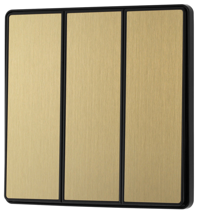 BG Evolve PCDSB43EB 20A 16AX 2 Way Triple Light Switch, Edge to Edge Rocker - Satin Brass (Black)