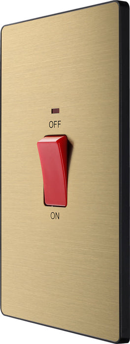 BG Evolve PCDSB72B 45A Double Pole Rectangular Switch with LED Power Indicator - Satin Brass (Black)