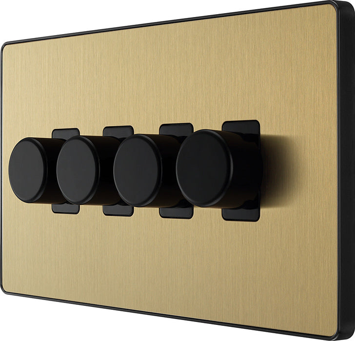 BG Evolve PCDSB84B 2-Way Trailing Edge LED 200W Quadruple Dimmer Switch Push On/Off - Satin Brass (Black)