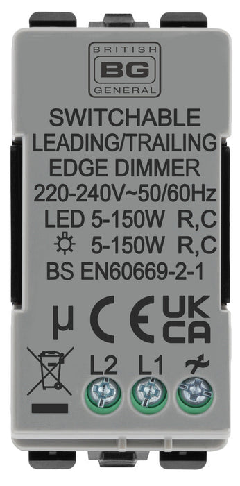 - Switchable Dimmer module for choice of trailing or leading edge (set to trailing edge as default)