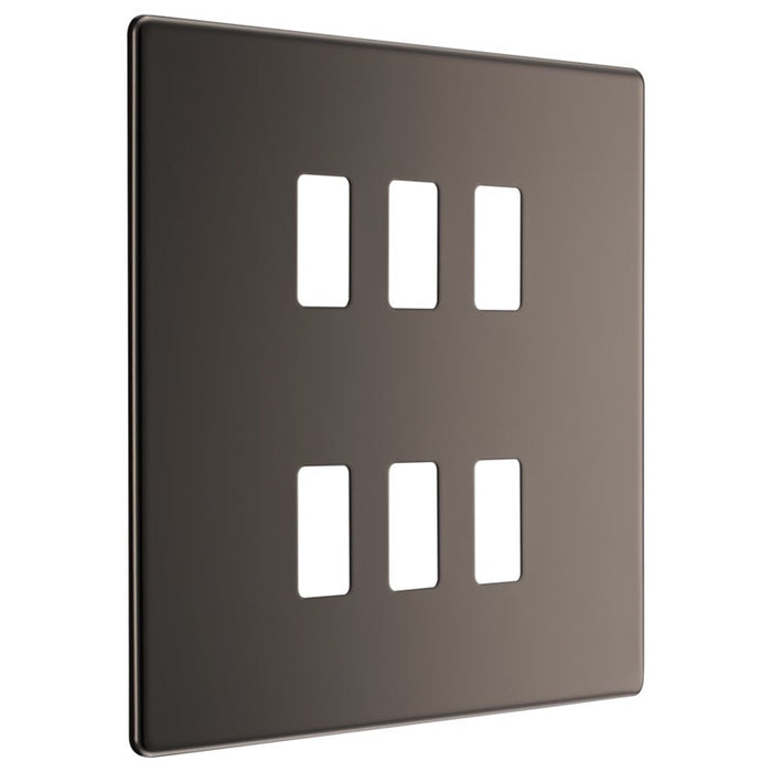 BG Flatplate Screwless 6G Grid Front Plate - Black Nickel