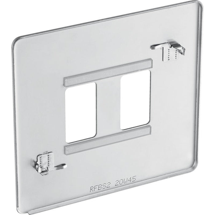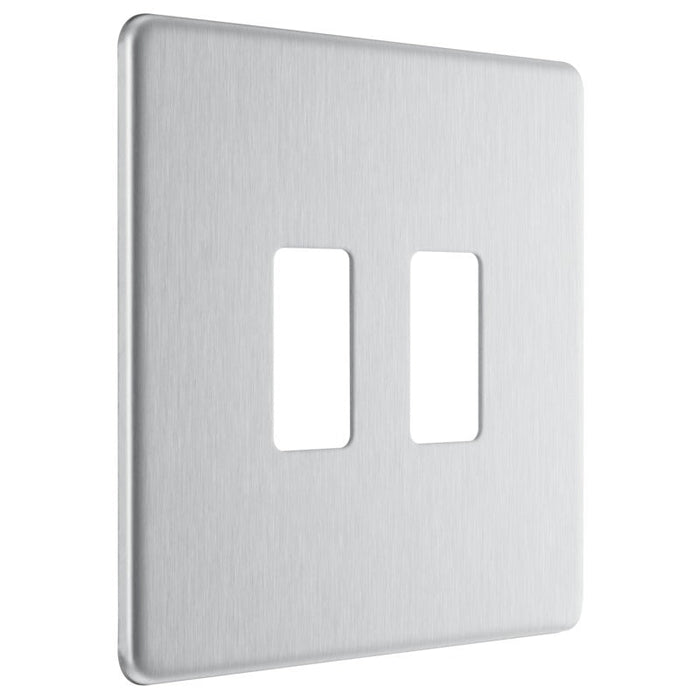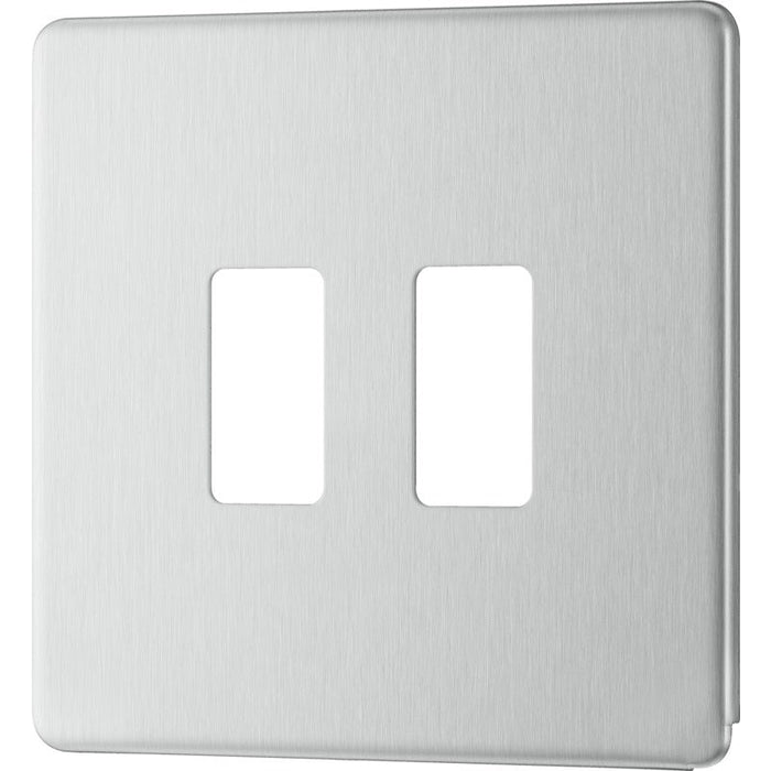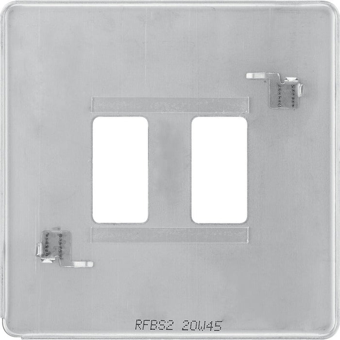 BG RFBS2 Flatplate Screwless 2G Grid Front Plate - Brushed Steel