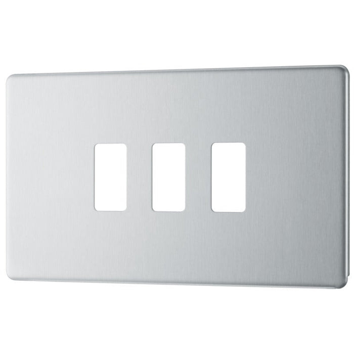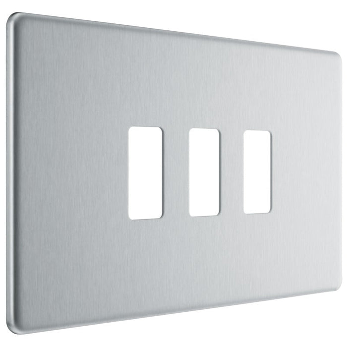 BG RFBS3 Flatplate Screwless 3G Grid Front Plate - Brushed Steel