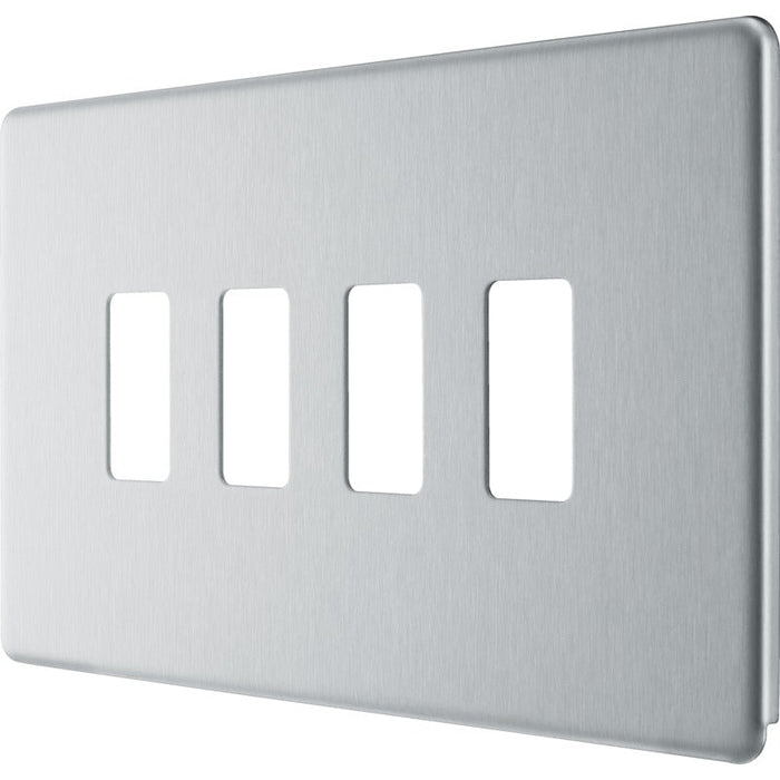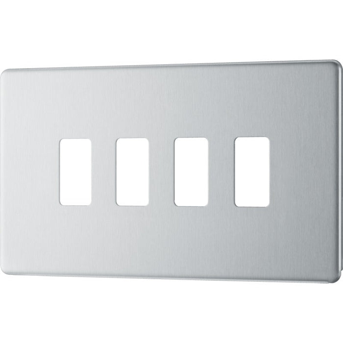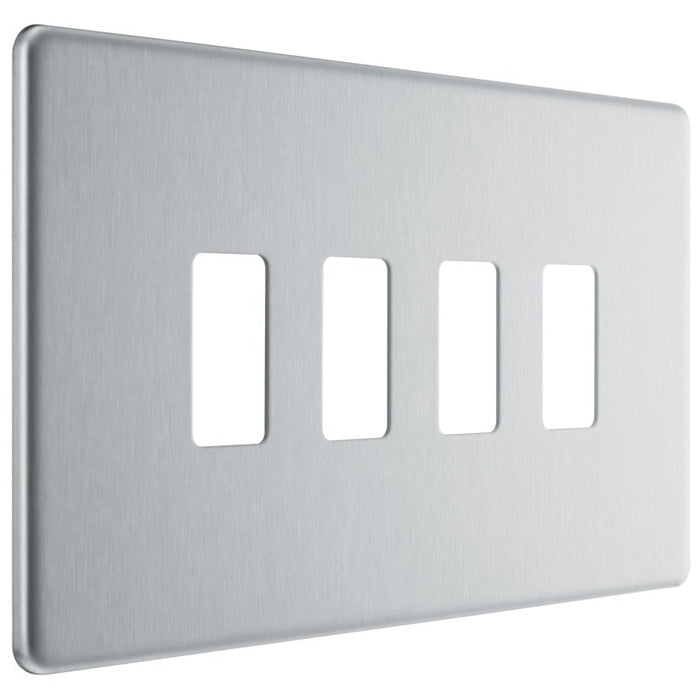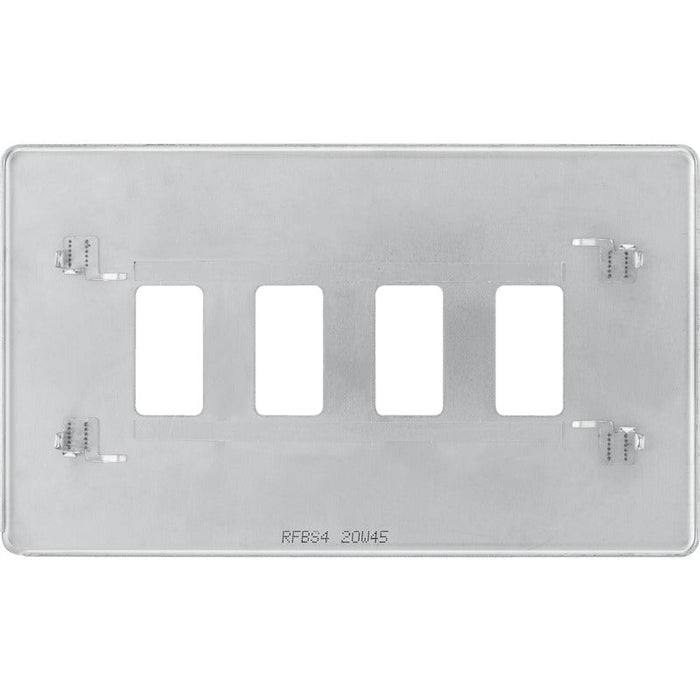 BG RFBS4 Flatplate Screwless 4G Grid Front Plate - Brushed Steel