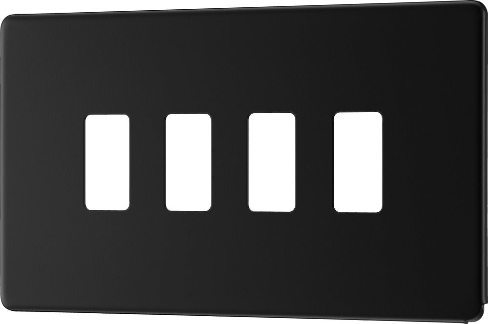 BG RFFB4 Flatplate Screwless 4G Grid Front Plate - Matt Black