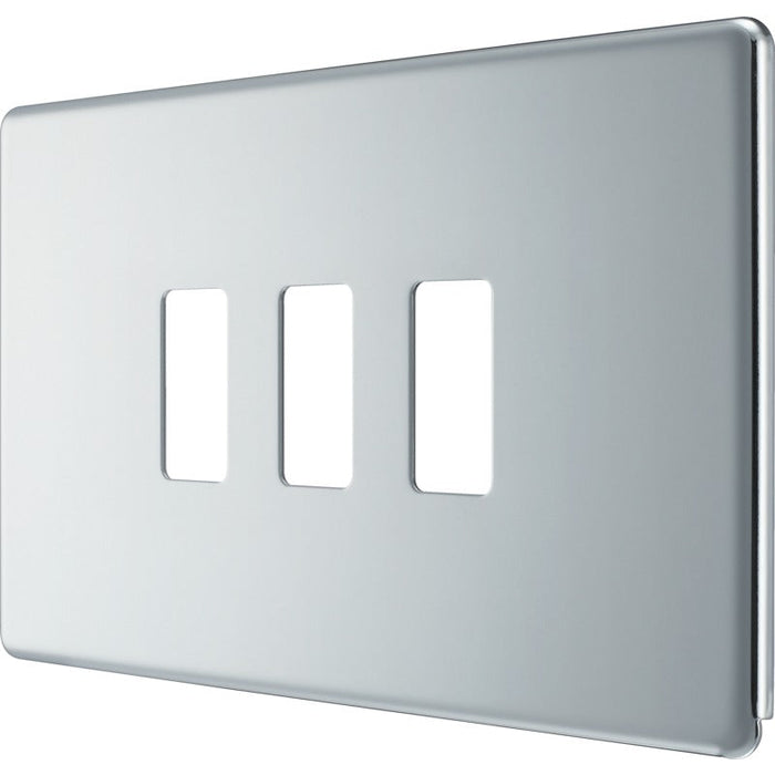 BG Flatplate Screwless 3G Grid Front Plate - Polished Chrome