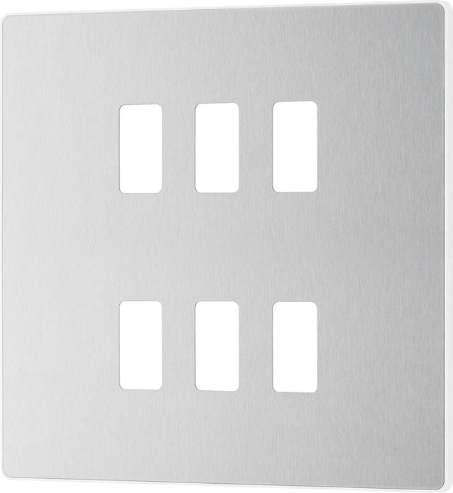BG Evolve RPCDBS6W 6G Grid Front Plate - Brushed Steel (White)