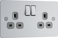 BG SBS20G Flatplate Screwed Dual Voltage Shaver Socket - Grey Insert - Brushed Steel