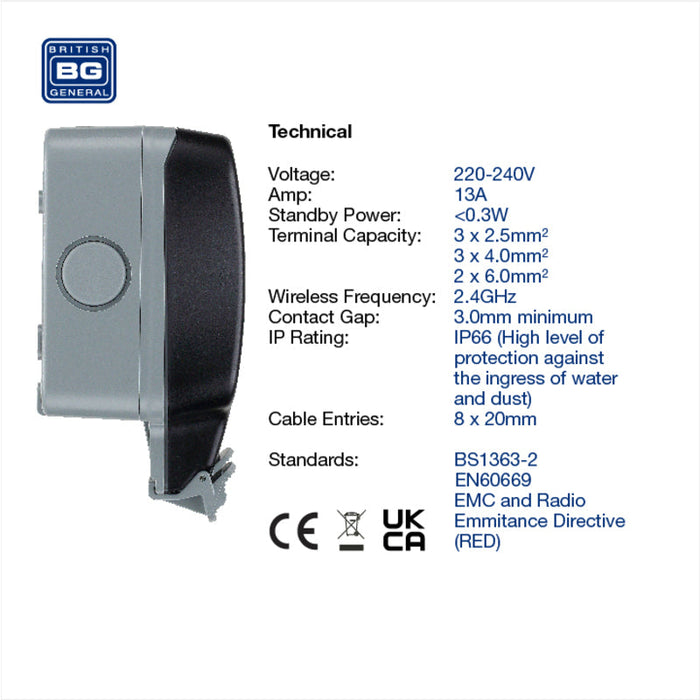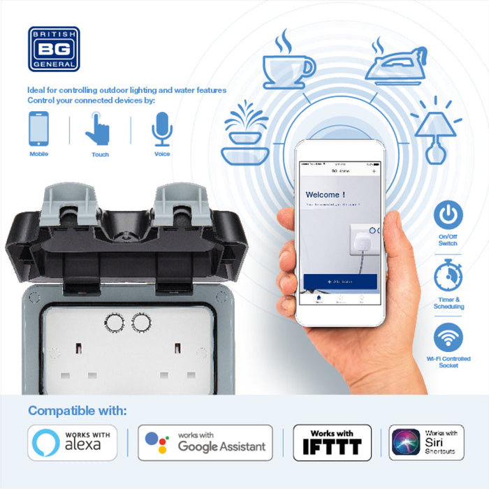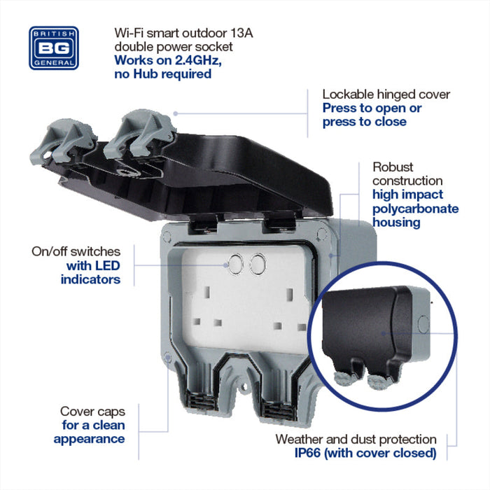 BG Nexus Storm IP66 Weatherproof Double Switched 13A Socket with Smart Control