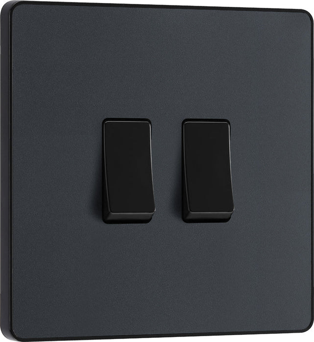 BG Evolve PCDMG42B 20A 16AX 2 Way Double Light Switch - Matt Grey (Black) (5 Pack)