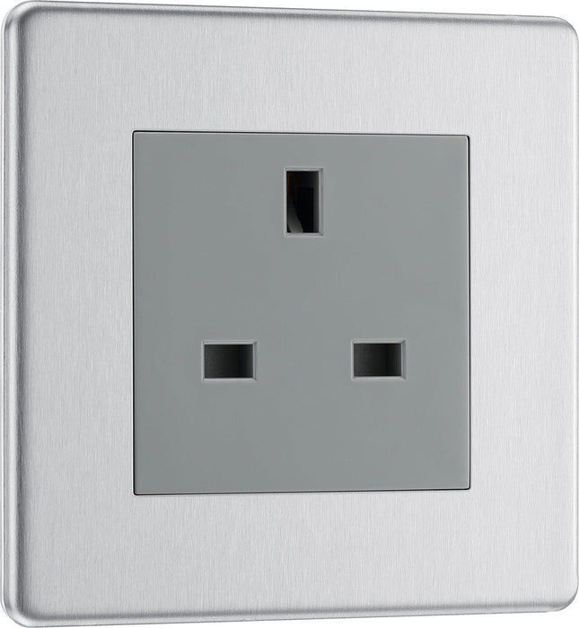 BG FBS23G Flatplate Screwless 1G 13A Unswitched Socket - Grey Insert - Brushed Steel