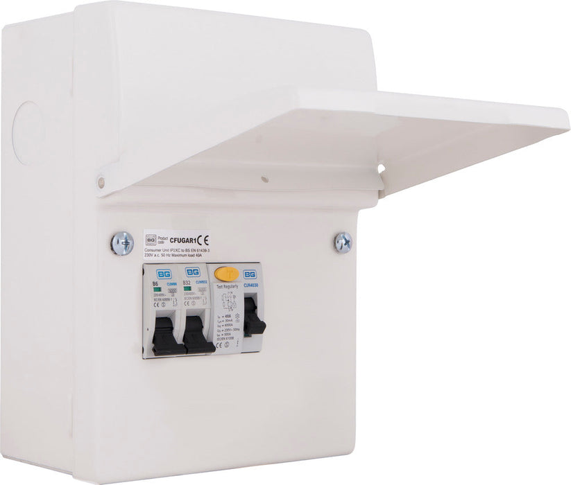 BG CFUGAR1 Garage Kit - IP20 Metal Enclosure, 40A, 30mA RCD, 6+32A MCB