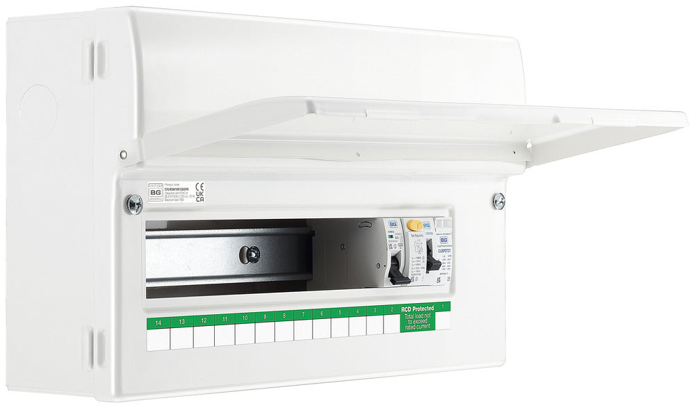 BG Fortress CFURSW10012ASPD 12 Way Metal Unpopulated Consumer Unit with 1x 100A 30mA Type A RCD & 1x SPD