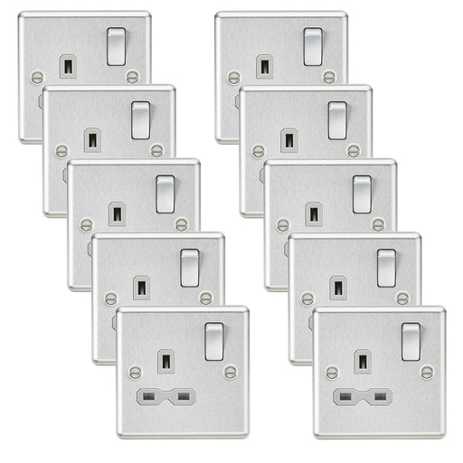 BG NBS21G Nexus Metal Single Socket 13A - Grey Insert - Brushed Steel (10 Pack) Premium BRUSHED STEEL metal accessories, in a range of superior qua...