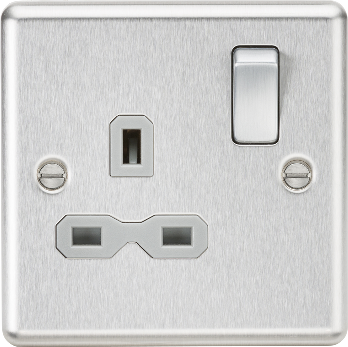 Knightsbridge CL7BCG Rounded Edge 13A 1G DP Switched Socket – Brushed Chrome & Grey Insert (10 Pack)