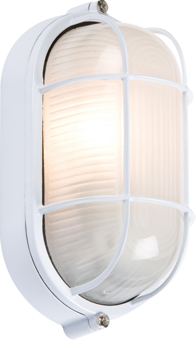 Knightsbridge TPOV60W 230V IP54 60W White Oval Bulkhead with Wire Guard & Glass Diffuser