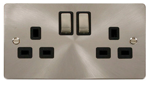 Click Define FPBS536BK Flat Plate 13A Ingot 2G DP Switched Socket - Brushed Stainless (Black)