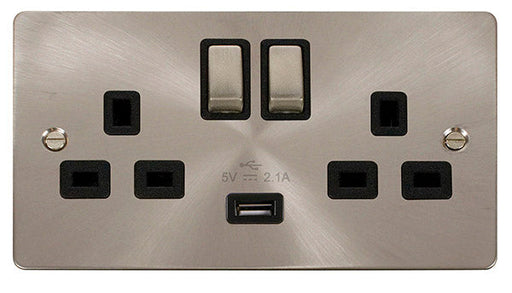 Click Define FPBS580BK Flat Plate 13A Ingot 2G Switched Socket + 2x2.1A USB - Brushed Stainless (Black)