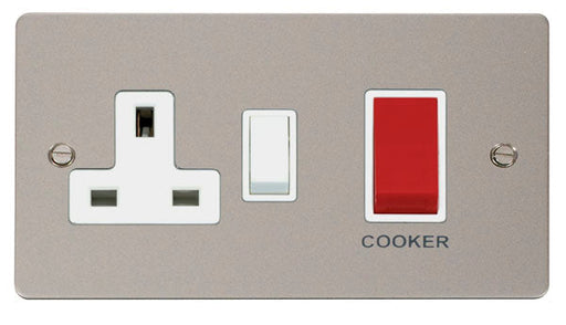 Click Define FPPN504WH Flat Plate 45A Ingot 2G DP Switch + 13A DP Switched Socket - Pearl Nickel (White) CLICK Define Decorative Flat Plate Electri...