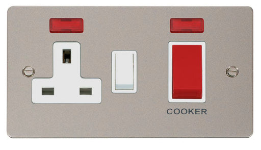 Click Define FPPN205WH Flat Plate 45A 2G DP Switch + 13A DP Switched Socket + Neon - Pearl Nickel (White)