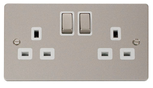 Click Define FPPN536WH Flat Plate 13A Ingot 2G DP Switched Socket - Pearl Nickel (White)