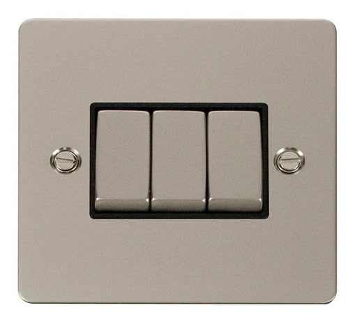 Click Define FPPN413BK Flat Plate 10AX Ingot 3-Gang 2-Way Plate Switch - Pearl Nickel (Black)