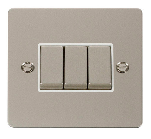 Click Define FPPN413WH Flat Plate 10AX Ingot 3-Gang 2-Way Plate Switch - Pearl Nickel (White)