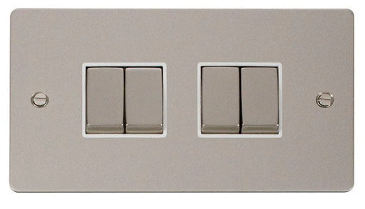 Click Define FPPN414WH Flat Plate 10AX Ingot 4-Gang 2-Way Plate Switch - Pearl Nickel (White)