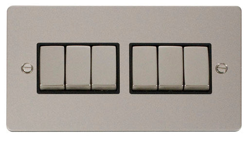 Click Define FPPN416BK Flat Plate 10AX Ingot 6-Gang 2-Way Plate Switch - Pearl Nickel (Black) CLICK Define Decorative Flat Plate Electrical Accesso...