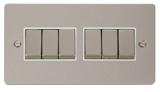 Click Define FPPN416WH Flat Plate 10AX Ingot 6-Gang 2-Way Plate Switch - Pearl Nickel (White)