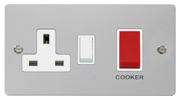 Click Define FPCH204WH Flat Plate 45A 2G DP Switch + 13A DP Switched Socket - Polished Chrome (White)