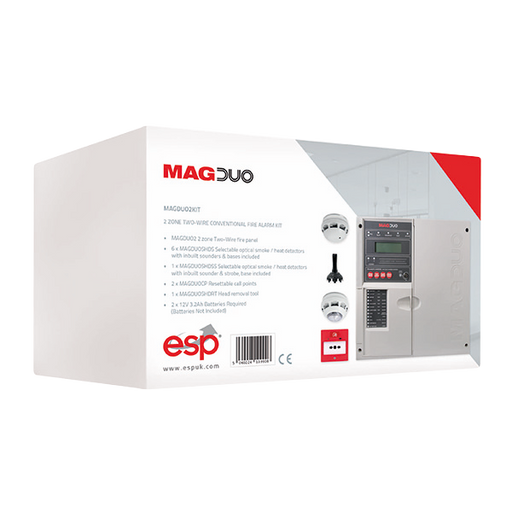 ESP MAGDUO2KIT 2 Zone 2 Wire Fire Panel Kit Grey MAGDUO2 Wire Fire Protection 2 Zone Two Wire Conventional Fire Alarm Kit Features: MAGDUO2 2 zo...