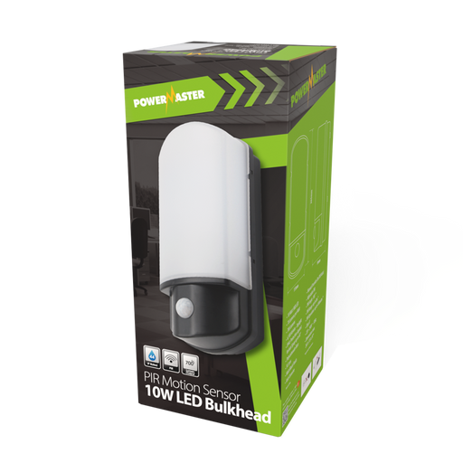 Powermaster S9348 10W IP44 Polycarbonate LED Bulkhead with PIR Motion Sensor Features Polycarbonate Prismatic PC Lens 10W SMD LED Anti Corrosive D...
