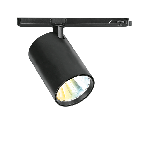 Adjustable colour switchable three circuit track spotlight with slimline track adaptor. Available in 24° and 36° beam angle with LEDs delivering up to 97lm/W. Available in black and white, the aluminium housing allows for excellent heat dissipation.
