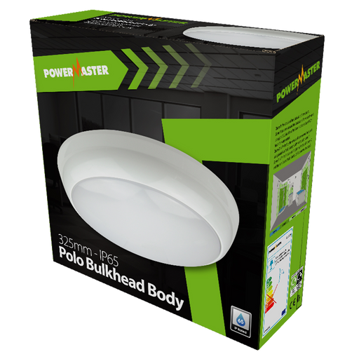 Powermaster S17319 15W IP65 Polo Bulkhead Body Features IP65 220 - 240V AC Beam Angle: 120º Working Temp: -20º to + 40ºC r Housing – White Diffus...