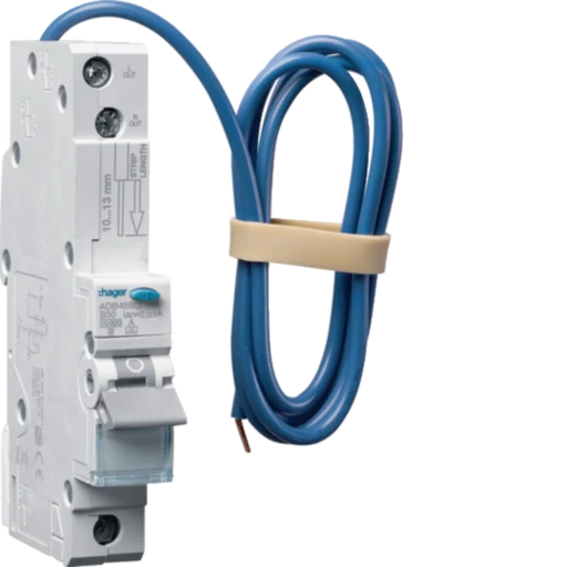 Hager ADB450U 50A Single Pole 1 Module B Curve 10kA 30mA Type A RCBO