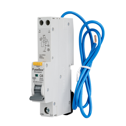 FuseBox RTA100630C 6A C Curve 10kA 30mA Type A RCBO Product Description Introducing the FuseBox Single Pole RCBO, the ultimate solution for protec...